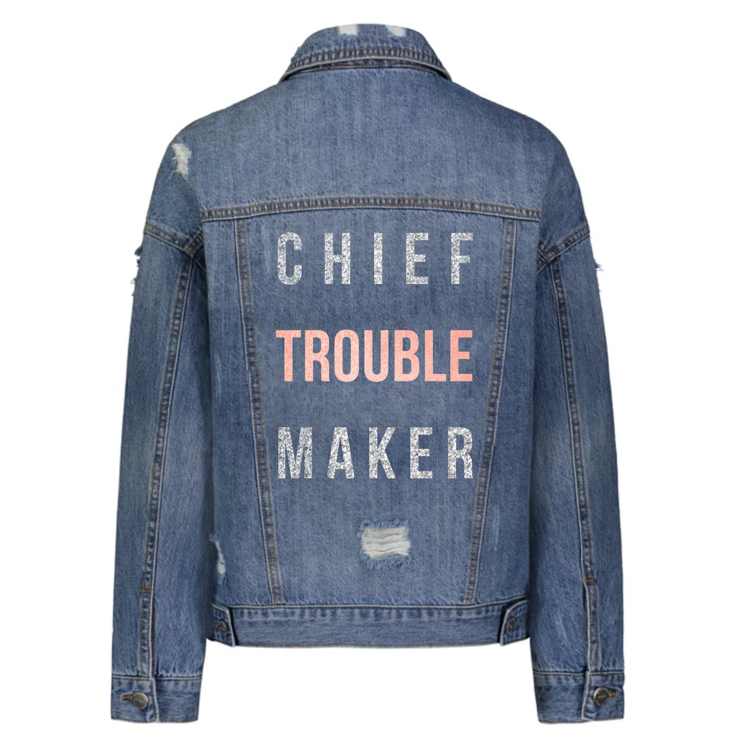 Our newest addition to our Chief Troublemaker Denim Collection. A jacket that is activating solutions for change and breaking the rules. The perfect layer in addition to all of our Talkin’ Tees®.